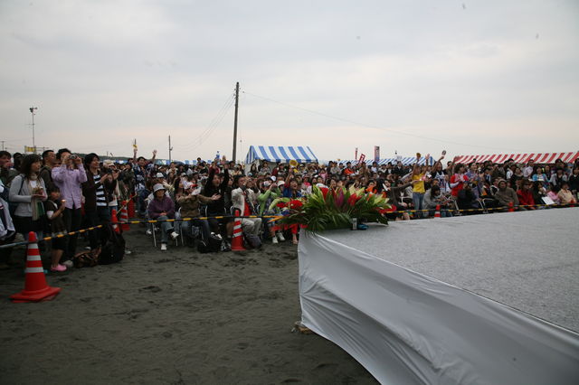 サザンコピーバンド「いとしのエリーズ」です。 皆さん、茅ヶ崎のサザンビーチで毎年4月に行われている 茅ヶ崎最大級のお祭り「湘南祭」をご存知ですか? 会場は「サザンビーチちがさき」の砂浜の上、 丸一日沢山のイベントが行われていて一日中楽しめる 正に「海祭り」です。 しかもそのイベントも、、 ■桑田佳祐杯 パドルレースコンテスト ■茅ヶ崎アロハマーケット ■湘南屋台村 ■サザンフリーマーケット などなど 読むだけで我々サザンファンがワクワクするようなイベントだらけw そんなサザンビーチにこの日でっかいス
