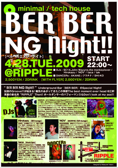 来週の火曜日28日、三軒茶屋のお洒落店(RIPPLE)で新しいPartyを始まる!