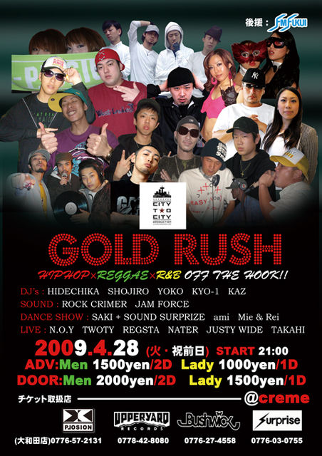 福井のメインストリームHIPHOPレギュラーPARTYと言えば福井市@CREMEで毎月開催されている「GOLD RUSH」!