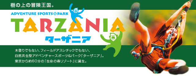 ターザニア行こうぜ!!! http://www.tarzania.jp/ とりあえず日程を決めましょう。予約制みたいだし。 参加希望者は↓伝助↓に入力してください。 http://densuke.biz/list?cd=ULVJ4YAxsnyEWWL6 **更新 4月29日(祝)に決定いたしました!! 空けとけぃ! 人数など確認して予約したいので、みなさま早めに参加表明願います。 乾いたパンツを持っていくといい。 **更新 フォレストアドベンチャーていうらしい。 どーやら富士山の麓にもこういうのあるらしーぞ!気になる!! http://www.foret-aventure.jp/
