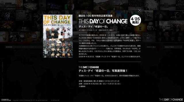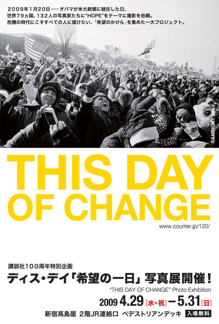 12月の中旬から写真集プロジェクトTHIS DAY OF CHANGEの企画(講談社100周年特別企画)に参加しているのですが、下記にこれから刊行予定の写真集と写真展のご案内をさせて頂きます。