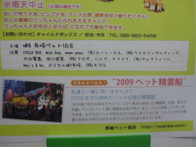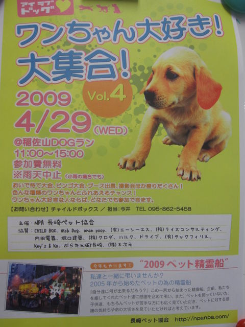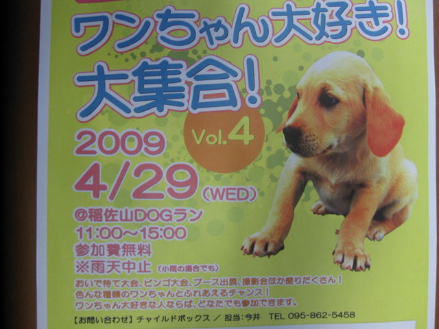 久しぶりのイベントをさせて頂きます。 詳細はトピックにてUPしてますので、よろしくお願いします。 もちろん入場無料! ビンゴゲームあり! おいで待て大会! ブース出展! 撮影会!等 ほか盛りだくさんで色々な種類のワンちゃんとふれあえるチャンス!! ワンちゃん好きならどなたでも参加できますよ〜〜!! よろしくお願いします。 それと、問い合わせ、ご質問等あればこちらでも直メッセでも何でも構いません のでお気軽にどうぞ! ☆当日は、ガッツ&みずっちでお待ちしております☆