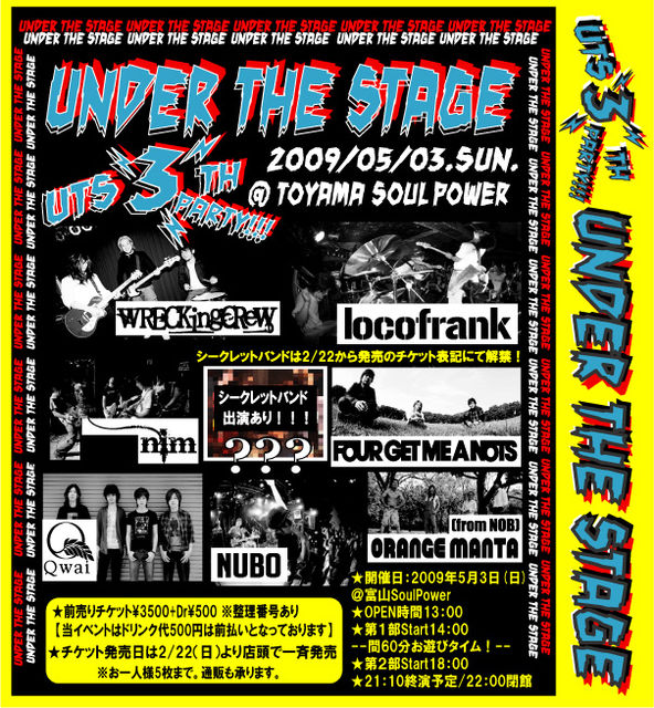 ☆★☆CDショップ:UNDER THE STAGEの3周年を記念して2部構成でお祭りを開催!フォゲミのリリースツアーでもある5/3に合同で企画!ライブはもちろん、ゲーム大会や屋台、駄菓子屋など設置する予定です!是非ご参加あれ!☆★☆