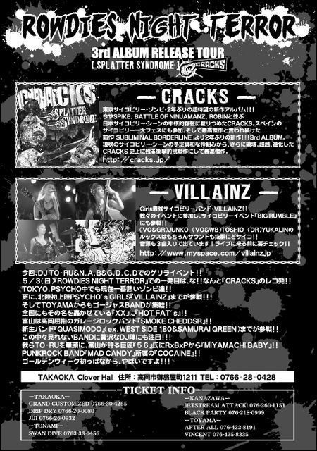 CRACKS "SPLATTER SYNDROME"RELEASE TOUR 09!!