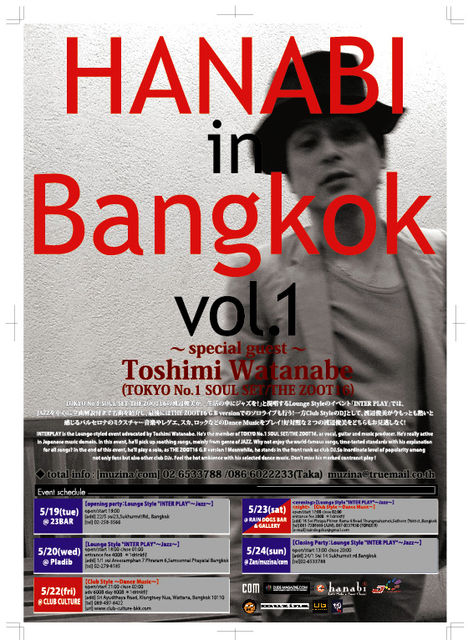 INTERPLAY is the Lounge-styled event advocated by Toshimi Watanabe. He's the member of TOKYO No.1 SOUL SET/THE ZOOT16, as vocal, guitar and music pro