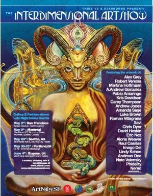 The 6th Annual Interdimensional Art Show 2009 Tour is produced by Tribe13 and Starbornehttp://www.myspace.com/campecotopia who have produced other wonderful events featuring underground electronic music, ritual theatre and fire, thematic and elaborate environments.