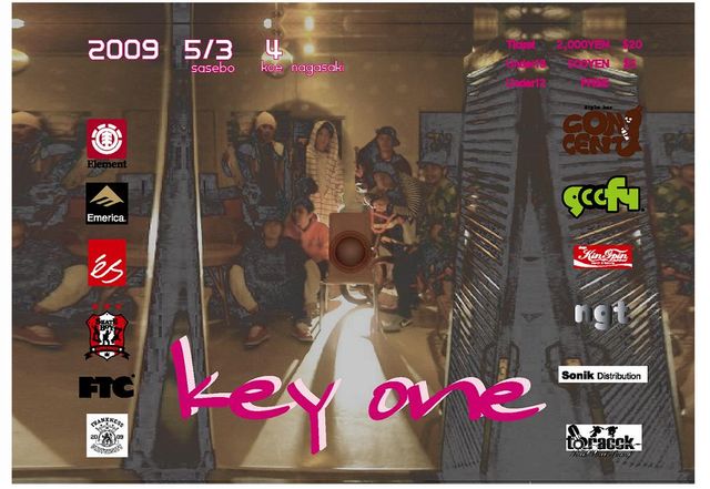 佐世保の皆さんこんにちは。 5月3日にニミッツパーク横佐世保公園(温水プール横)で、 スケートボード、BMX、スノーボードのイベントをやります。 プロスケートボーダーもゲストで参加しますので、 是非お越しください。 パーク外からの見学は無料です。 ACTION SPORTS FESTIVAL 【 KEY ONE 】 【2009.5.3(sun)SASEBO】 【2009.5.4(mon)NAGASAKI】 DJ CONCENT【IPPO】 GUEST PROSKATER ELEMENT【SEIGI MAEDA】 KINGPIN【TSUKASA KAWAGUCHI】 MC BMXSHOWTEAM QEST【KAKERA SAKAI】 TICKET 1DAY