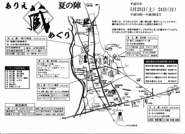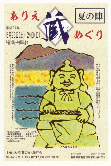 5月23日(土)・24日(日) 『ありえ蔵めぐり 夏の陣』 が開催です 5月開催の「夏の陣」は、今年で2回目になります 2月の蔵めぐりより規模は小さめですが、各蔵催し物を用意しておりますので 是非、足をお運び下さいませ 壱之蔵の我が家(吉田屋)では 『懐かしの映画ポスター展』 を開催します もちろん、今の時季の美味しいお酒の 試飲・販売 も行いますよ そして。。。八千代喫茶店には 『鎧兜』 も展示しています 是非・是非 お越し下さいませ!