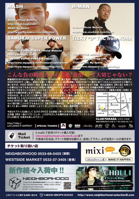 開催場所を@PARADAへ移しての【MAKE IT HAPPEN】第2回目!!