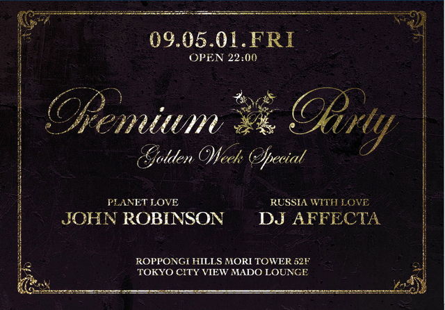 来るゴールデンウィークに六本木ヒルズ52階マドラウンジにて行われます"Premium Party"のお誘いです。