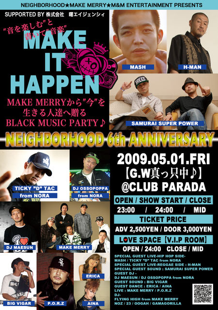 今回は【MAKE IT HAPPEN vol.21 with NEIGHBORHOOD 6th ANNIVERSARY】と題し、前回にも増して盛大に【楽しい宴】を開催します♪
