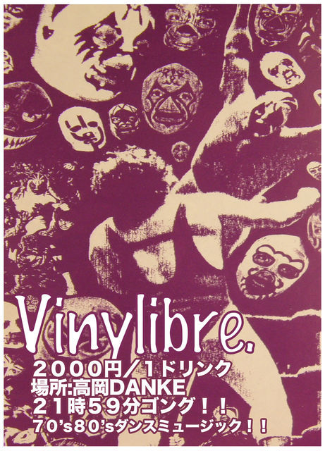 【vinylibre.vol,2】 場所:DANKE(高岡) 5/1 21:59 ゴング! \2000/1ドリンク -DJ- S.Mascars BOBO佐藤 平成維震軍 SHIRO OTSUMAMI BREAKS 70'80'ダンスミュージック!!