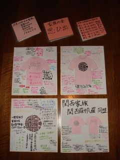関西では関西羅帆羅→同盟 関東では関東羅帆羅→同盟 として活動開催してる家族の会^^ ところでその同盟なに?? 家族の会って?? そう思われる方々がたくさんいると思います。簡単に言えば Zepp大阪の逆襲ライブのアンコールで、健治さんが着ていたり、会場周辺でピンクのTシャツを着ていた人いましたよね?? それが関西羅帆羅→同盟であり、mixiのコミュニティにも関西・関東両方が存在しますので、よかったら見つけてみて下さい(^ω^) そして家族の会とは、同じファン家族同士が集まり、楽しく熱く語り、カラオケでおもいきり騒ごう!!