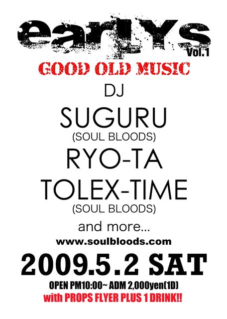 ※12:00までにご入場された方、ALL DOOR \1,500(1D)
