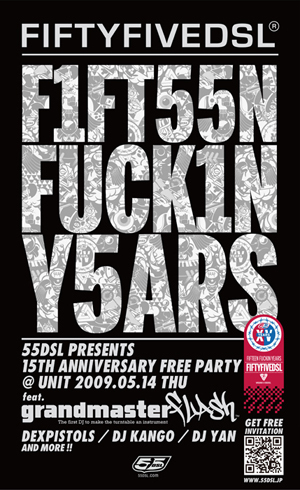 5月14日(木)イタリア発のプレミアムストリートウェアブランド「55DSL」がブランド誕生15周年を祝い、フリーパーティーを代官山UNITにて開催します。フューチャリングDJにはHIPHOP界のパイオニア、GRANDMASTER FLASHを招聘。日本勢からはDEXPISTOLS、DJ KANGO、DJ YANら、TOKYOを代表するDANCE MUSIC DJ`Sを迎え’’OLD TO NEW!スタイルウォーズPARTY’’を開催!55DSLのブランドDNAである古き良きOLD SCHOOL HIPHOP。そこにカッティングエッジなDANCE MUSIC。原点回帰ともいうべきこの15周年パーティーにこれほどふさわしい組合せはないのでは!?こ