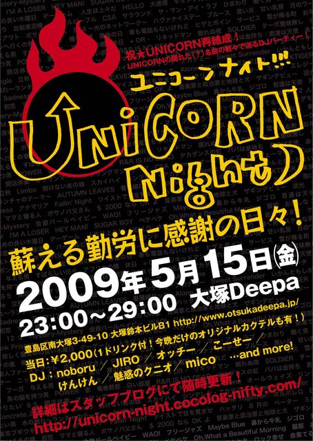 UNICORNだけでなく、ソロもかかりまくりの DJ Partyです。