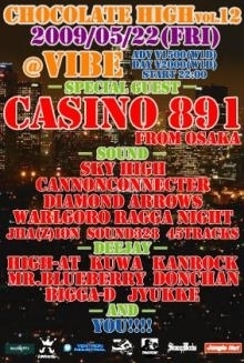 CHOCOLATE HIGH vol.12 2K9.05.22(FRI) @VIBE OPEN/START 22:00〜 ADV/1500 W1D DAY/2000 W1D SPECIAL GUEST CASINO 891 fr.OSAKA SOUND CANNON CONNECTER WARLGORO RAGGA NIGHT DIAMOND ARROWS JAH(Z)ION SOUND 328 45 TRACKS DEEJAY KUWA HIGH-AT KAN-ROCK BIGGA-D MR.BLUEBERRY DON-CHAN JYUKKE …and YOU!!