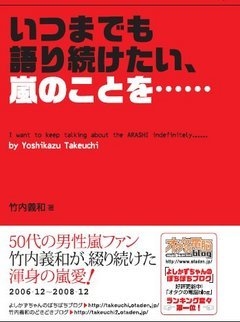 「嵐」について本を出版されている、竹内義和さんが!! ついに名古屋でトークイベントを開催されます。 「いつまでも語り続けたい嵐の事を」の書籍化祝いイベントです! 名古屋では初のイベントとなります。このイベントを一緒に盛り上げませんか? 興味はあるけど、という方。まずはこちらのブログをご覧ください。 ↓↓↓ http://takeuchi.otaden.jp/ 【名古屋】 トークツアー2009 in NAGOYA 5月24日(日) 開場14:00 開演14:30 ダイテックサカエ(マノアホール) 前売1800円 当日2000円 座席数130 管理人は前売り
