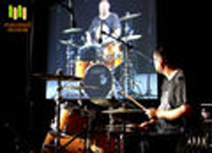 この日のメインは、ドラびでおと灰野敬二の奇跡のコラボレーション!!事前に撮影した灰野敬二をドラびでおがビデオ操作で操り、隣で本物の灰野敬二が生でギターをかき鳴らす!!二人の灰野敬二が渾然一体!縦横無尽にノイズをかき鳴らす!!!