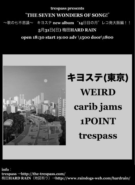 adv 2500yen door 2800yen(共に要1ドリンクオーダー)