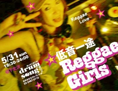 告知失礼しまーす ☆★ゆるい街東京下北沢のレゲエ・バー " DRUM SONG " のイベント★☆ 5/31日曜日 [  Reggaeガールズ★低音一途  ]  レゲエにゾッコン!!!!!!!!!!!!!!! " 低 音 一 途 " なガーーーーール達が仕切る DRUM SONG恒例 女子校ノリなレゲエパーティー♪♪♪ Ska"" Rock Steady"" Roots"" Lovers Rock"" DanceHall""等から ガahーーーーーールズ目線のTUNEをバキューーーーーーーーンとイキます!!! ガチなクラブイベントはチときついって方、、、! 『 立ち飲み屋 』で軽く一杯って感じで遊びに来て下さいです♪♪♪