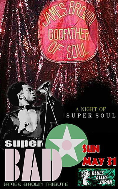 告知よろしくお願いいたします。 ■ James Brown Tribute Super Night 2009 ■ 2008年10月に引き続き 目黒のブルースアレイ ジャパンでのJ.B.T.ワンマン 実現いたします。 【5月31日(日)】 前売券 テーブル席(指定)\4,000 立見(自由)\4,000 当日券は各料金\500UP (各税込) オープン17:00 (予定) 1stステージ18:30〜 2ndステージ20:15〜 【会場】 東京目黒Blues Alley Japan http://www.bluesalley.co.jp/index.html 〒153−0063 東京都目黒区目黒1−3−14 ホテルウィング・インターナショナル目黒B1
