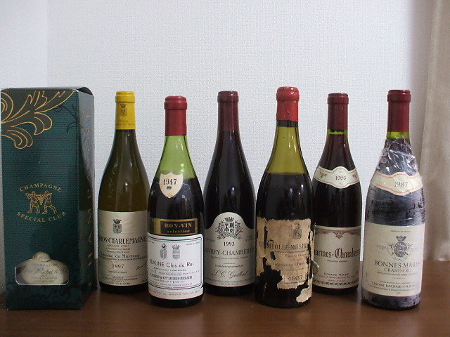 ブルゴーニュの面白い古酒を手に入れました。 そのうち一本はグリヴレです! 1937 Chambolle Musigny 1er Vigne de Chateau / Domaine Grivelet 1947 Beaune, Clos du Roi / Liger-Belair この2本をメインにワイン会をしようと思います。 *************************** 参加人数:8名 日時:2009/6/7(日)夜 会費:13000円 場所:カジュアルフレンチ・サンセリテ(阿波座) http://r.tabelog.com/osaka/A2701/A270105/27030086/ 食事:込み 急ですが6/7(日)に設定させていただきました。 もし6/2(火)までに募集人数に達
