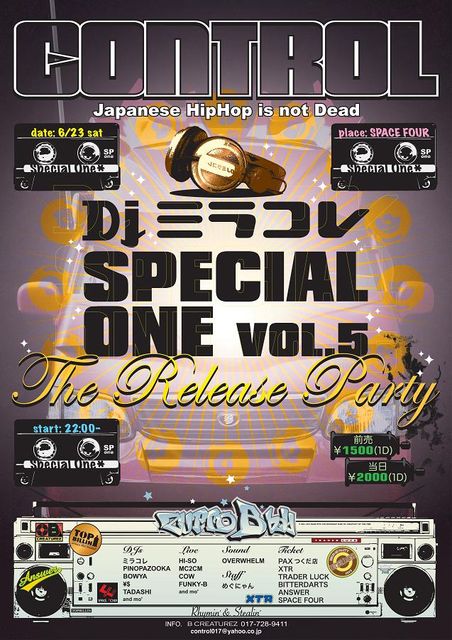 ジャパニーズオンリーMIXCD『SPECIAL ONE VOL.5』をドロップした、レペゼン青森&仙台!DJミラコレが久々にコントロールに登場!!定番モノからアンダーグランド、クラシックまで!日本語ラップ好き必聴のマチガイナイ選曲でスペースフォーが揺れる☆