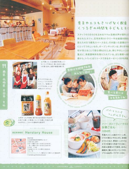 皆様決定しました 大変お待たせして申し訳ありません。 開催日:2009年6月29日(月) 時間:11:00〜12:30 ←★ハー・ストーリィが混み合う為時間制限がありまして その後は各自お買い物やでもしましょう 場所:ハー・ストーリィハウス キッズルームとその横のテーブル2席予約済みです 大人15名、子供7人と一応いってますが、前日まで変更可能です。 メニューはこのオフのために特製ランチ、ドリンク込みの1050で ご用意してくださります