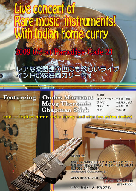 ●6月3日(水) 名古屋 Live concert of Rare music instruments With Indian home curry(生方さんのインドカレー付珍しい楽器コンサート)
