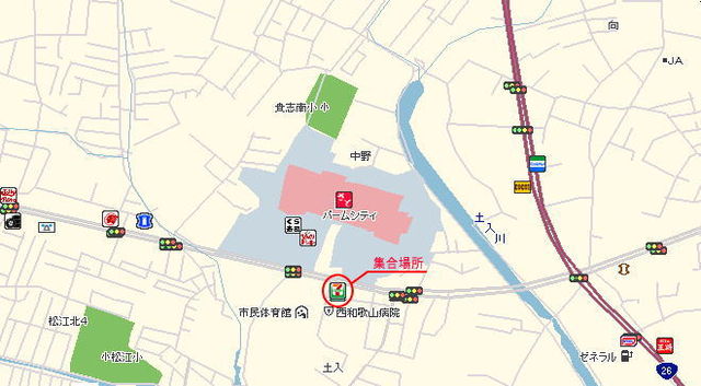 左手に「ライフ」と言う「四葉マーク」のスーパーマーケットが見えます。
