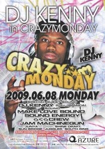 告知失礼します。 ※緊急告知※ VOICE MAIL、COLLIE BUDDZに続き 6月8日の月曜日にCRAZY MONDAY@アメ村AZUREにて FROM JAMAICAより『DJ KENNY』が来阪!!! REGGAEのMIX CDを作らせたらキングストン1すなわちジャマイカ1つまり世界1!!! 彼のMIX CDを持ってる方も多いはず!過去2回、日本での PLAY歴があり、大阪は今回が初! SEAN PAULのTOUR DJを勤めるなど今や世界からお呼びがかかる存在に。 ジャマイカ直通の時差のないSOUND PLAYを体験するべし! DJ KENNY インタビュー http://www.youtube.com/watch?v=-EEQSuWgRRY