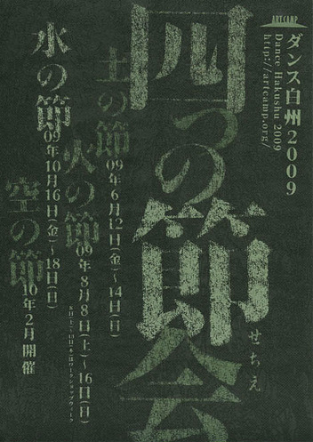 ダンス白州2009─四つの節会(せちえ)─ Dance Hakushu 2009 - 4 Sessions - http://www.artcamp.org/ ★土の節 2009年6月12日(金)-14日(日)≫開催間近! ★火の節 2009年8月8日(土)-16日(日) ※8日(土)〜13日(木)はワークショップウィーク ★水の節 2009年10月16日(金)-18日(日) ★空の節 2010年2月開催(日程未定) 会場:山梨県北杜市白州町(横手・大坊地区)の随所 (都内新宿駅より2時間半、最寄り駅= JR 中央本線 韮崎/ 日野春/ 長坂/ 小淵沢駅、車は中央高速利用) 昨年20回目を迎えたダ
