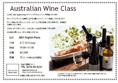 この度、「DBS! English Place 」でワインクラスのイベントを開催いたします。