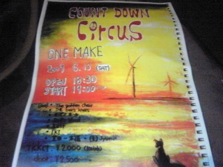 まだ冷え込む夏の夜、あの暑い熱い夏祭circus ZEROでの参加ア-ティストを含む、全7バンドによるLIVE EVENT!!! 中には米子を中心とするお笑い芸人(芝田一本道)SHOW TIMEもお披露目!!! □■□■参加ア-ティスト■□■□ バンド:ファンカライブ IKI Bett イ-デンホ-ル THE bees knees the golden chair Drift Wood お笑い:芝田一本道 D J :JUNJI ‡ONE MAKE‡ OPEN 18:30 START 19:00〜 ★one drink \2.000 参加ア-ティスト、LIVE関係者、そしてこの