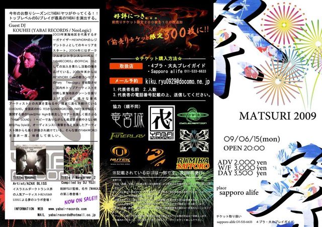 ジャンルは「ユーロ・テクノ」「エピック」「サイケ」「テッキー」「ハウス」とてんこ盛りの前代未聞イベントぉぉぉ〜です