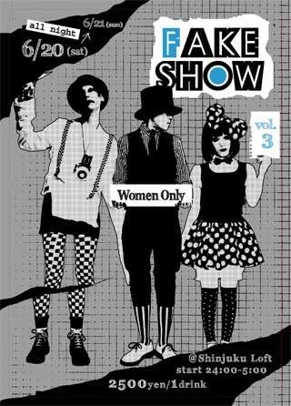 ・。*★vol.3開催決定★・。* ●FAKE SHOW● 2009.6.20(sat)→6.21(sun) ■24:00-5:00 All Night !! ■通常 2.500yen/1D ■コスプレ or mixiコミュ割引 2.000yen/1D ■@新宿LOFT Bar floor ※mixi割引には事前にイベントトピックへの参加表明が必要です※ FAKE★SHOWとは…? 20歳以上のヴィジュアル系の音楽を愛好する女の子限定のクラブパーティーです。 フロアーでかかる曲もヴィジュアル系ONLY!バンドのコスプレでのご来場も大歓迎! 同じ趣味のお友達や恋人が欲しい!ライブや集会以外で出逢いの場があれ