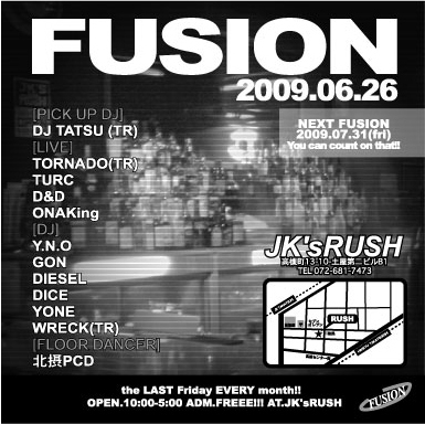 第二回は大阪からレコードは勿論、多数のダブプレートを所有し、間違いない選曲とMCでフロアをロックする【K