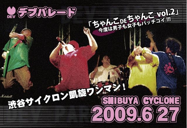 きました。 デブパレード伝説のワンマン再び。 「ちゃんこDeちゃんこVol.2」 前回は女子限定でしたが、 ついに男子も女子もバッチコイ!!!! 詳細は追って。 6月27日(土)渋谷サイクロン 18:30 OPEN 19:30 START ADV. 2000Yen +Drink代 Door. 2500Yen +Drink代 なんと、極秘映像をOPENより上映! 抱腹絶倒!ビックリ仰天! 早くくるしかない! 前売り予約は devparade@gmail.comまで!