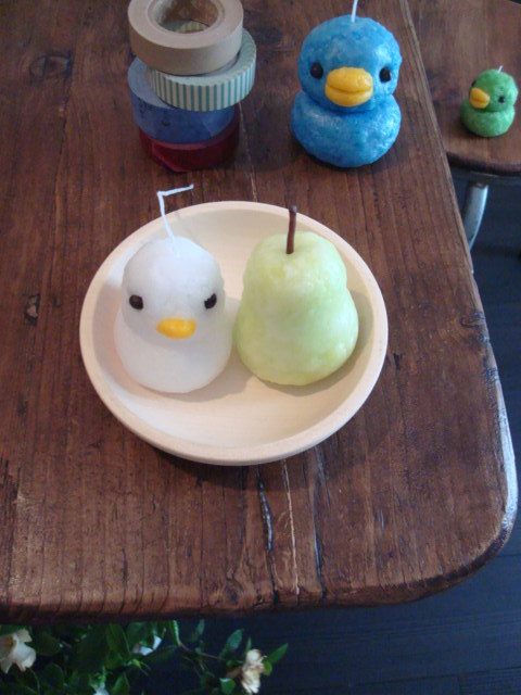 21時よりお願いします。 ●お花のカップケーキキャンドル(お飲みもの付きで5000円) 美味しい香りです *雨の日の贈り物。エリザベスちゃんからピヨ丸へ エリザベス・チョコレートのEの刻印 ●ピヨ丸くん1匹と洋なしキャンドル(お飲みもの付きで5000円) (色と香りを当日お選びください) ・お持ち帰り用、紙バッグはこちらでご用意させて頂きます。 ○お昼のクラス13時から約2時間 ○夜のクラス19時30分から約2時間 ・参加人数 ・作りたいキャンドル をご記入ください