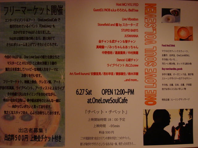 吉祥寺BAR Cheeky ent free cheeky http://www.bar-cheeky.com 今回は”蛍”から Kyo-hey http://www.myspace.com/Duskytiti tori http://www.myspace.com/16team16 両名のゲスト 音もばっちりです。 timetable 22:00 you-me 23:00 tori 24:00 taisouegao 01:00 di uri 02:00 solalis hour 03:00 kyo-hey 04:00 koyubi Visual 太陽カゲロウ 楽しみです