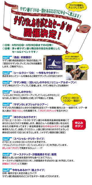 管理人様、コミュの皆様お世話になっております。 サザンのトリビュートバンド「いとしのエリーズ」と申します。 4月末の湘南祭ライブは大変盛り上がることが出来ましてありがとうございました! 次回ライブはなんと!またもやサザンファンの聖地茅ヶ崎 「サザン通り商店街」です! 茅ヶ崎サザン通り商店街では昨年に引き続き今年もサザンデビューの日6/25〜6/28までの四日間、「サザンStありがとねセール09」を行います。 そのイベントの一環でサザン通り中南信用金庫駐車場にて 6/28(日)13時〜 いとしのエリーズ街角LIVE を開