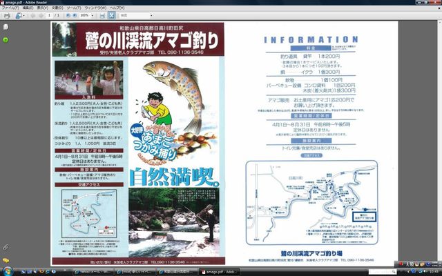 日高川町(旧中津村)に渓流の王様“あまご”の釣堀あるみたいです!そして釣ってその場で炭火焼きにして食える!!との情報をゲットしたので、皆様行きませぬか?? 入漁料金2500円 貸し竿あり、貸しコンロありなので手ぶらでいけまーす♪ ルート↓ 10:00 道の駅白馬の里集合〜R424から御坊方面へ。 11:00 中津にてアマゴ釣り&アマゴ食う!(おにぎりなど持参したらなおGoodかもしれません★) 13:00 R424戻り 〜 道の駅龍遊 〜 道の駅龍神(休憩)〜高野龍神スカイライン 〜焼き餅屋にて休憩 〜紀ノ川万葉の里(解散)