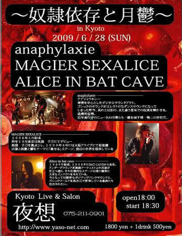 6/28(日) 「奴隷依存と月鬱」 出演:Magier sexalice / Alice in bat cave / anaphylaxie OPEN 18:00 / START 18:30 \1800(+1drink \500)