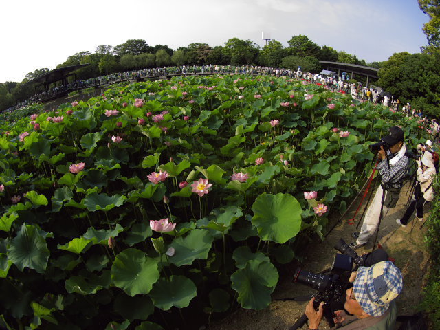 万博公園の日本庭園蓮(はす)池で開催される「早朝観蓮会&象鼻杯」に合わせて、ネイチャー撮影をやってみよう企画です。 蓮の花は6時前から「ホッ」という(音がする気がする)感じで次々開いていきます。 なお入園料250円(だったかな?)は個人でご負担ください。先着順に入り口でウチワがもらえます。 ※象鼻杯とは:蓮の葉の上から酒を注ぎ、中空になっている茎を通って飲む行事 【万博公園サイト情報】追記します http://park.expo70.or.jp/facil/facil_00.html#hasu ■ コアタイム「8時に蓮池すぐ横の自動販売機がある休憩所に集