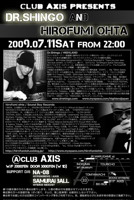 今宵の宴ぞ知りき者は 妖艶なる気に身を包まれ 視覚聴覚の快楽に陥りけり ★GLAM★vol.4 HOUSE MUSIC PARTY!! 2009.07.25(sat) start: 22:00〜 @CLUB AXIS WOMEN 1500yen(1d) MEN 2000yen(1d) Special Guest DJ NA-08[HYPERDRIVE/AXIS] Guest DJ KEIGO Resident DJ HILOK@ZU 庵 Dancer mika hitomi Special GuestにNA-08氏!!! GuestにKEIGO氏を迎え入れ、さらにDancer mika嬢に加え、新たにhitomi嬢が参加!!! このpartyはまーーーーーじーーーーでーーーー見逃したら損するので要注意!!! さらにさらに!!!先着30名様に庵のmix CDを