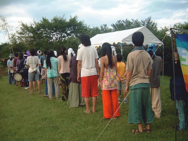 ”13の月の暦” 時間をはずした日7月25日そして2009新年「黄色い自己存在の種の年」へ。 蔵王のお山のふところ深く宇宙のリズム自然のリズム太古のパワーを取り戻したのしいリズムで歌って踊ろういのち輝く感謝の祈りのまつり。 @白石市福岡深谷白萩山 南蔵王野営場Dサイト ?0224−24−8126 プログラム 24日 13:00受付開始 17:00オープニングセレモニー 縄文火越し 聖火神事 祈りのティピでセレモ二ィー 法螺貝 石笛 太鼓 うた 踊り 19:00虹の宴