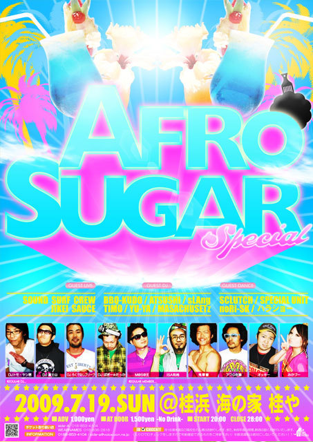 管理人様告知失礼いたします。 AFRO SUGAR SPECIAL in 桂浜海の家【桂や】 2009.7.19[sun] ADV/1,000yen AT DOOR/1,500 START/20:00 CLOSE/28:00 ☆GUEST DJ☆ BBQ-KUDO sLAng TIMO YU-YA ATSUSHI MASACHUSETz ☆GUEST LIVE☆ JIKEI SAUCE SOUND SURF CREW ☆GUEST DANCE☆ SCLUTCH SPECIAL UNIT noRi-SK ハラショー ☆AFRO REGULAR DJ☆ MASA TOMOYA FUZI TAKKA ☆AFRO REGULAR DANCER☆ ISAO M@S@王 このように豪華メンバーが集結!! ジャンルも幅広く、色々な方に楽し