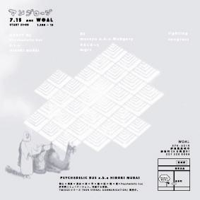 告知失礼します。 久し振りのド・平日パーティー'MANNGLOVE'開催です! 今回は代官山Saloonを中心に活動するPsychedelic busさんをお呼びしました〜! クリックを軸にヒップホップをルーツとした独特のMIXは最高! 2009-07-13 'MANNGLOVE' \1500/1D 21:00start!!! GuestDj: Psychedelic busa.k.a HIROKI MURAI(MOKMAL SOUND) DJ: masayu a.k.a. Mahgary,ちるこぽっと,MGRV LIGHTING: 照明係サングラス Psychedelic bus a.k.a HIROKI MURAI 富山×海原×東京×武×音×踊×煙×熱×愛=Psychedelic Bus 非言語コミュニケーシ