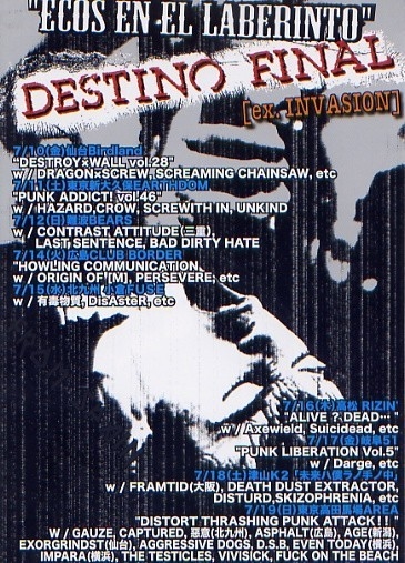 今回のゲストはSPAINのバルセロナより来広するD-BEATハードコアパンクバンド「DESTINO FINAL」!!